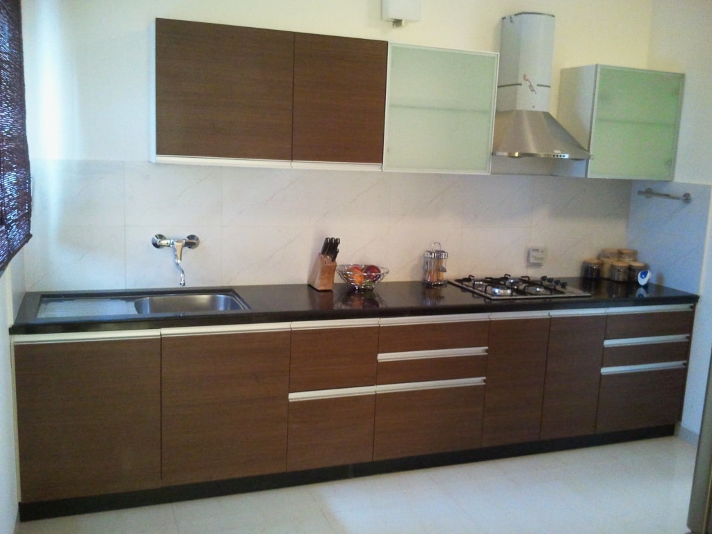 This is the most space effective kitchen of all the other kitchen types. It is an ideal kitchen shape for small rooms and apartments. This lies along a single wall yet accommodating all your kitchen appliances and furniture very smartly. The best part about a Line Kitchen is that, it never interferes with rest of the rooms and neither does it spoils the interior of the room in which it is installed. Rather it gives you a considerable amount of free space for arranging your television set, couch or bed and turns it into a living cum dining room. It gives you the freedom to do your kitchen chores and rest at the same space when exhausted. At Bella Kitchens, you will find a complete set of Line Kitchen instrumentation and installation as per your customized size. Hurry up and avail the best!
